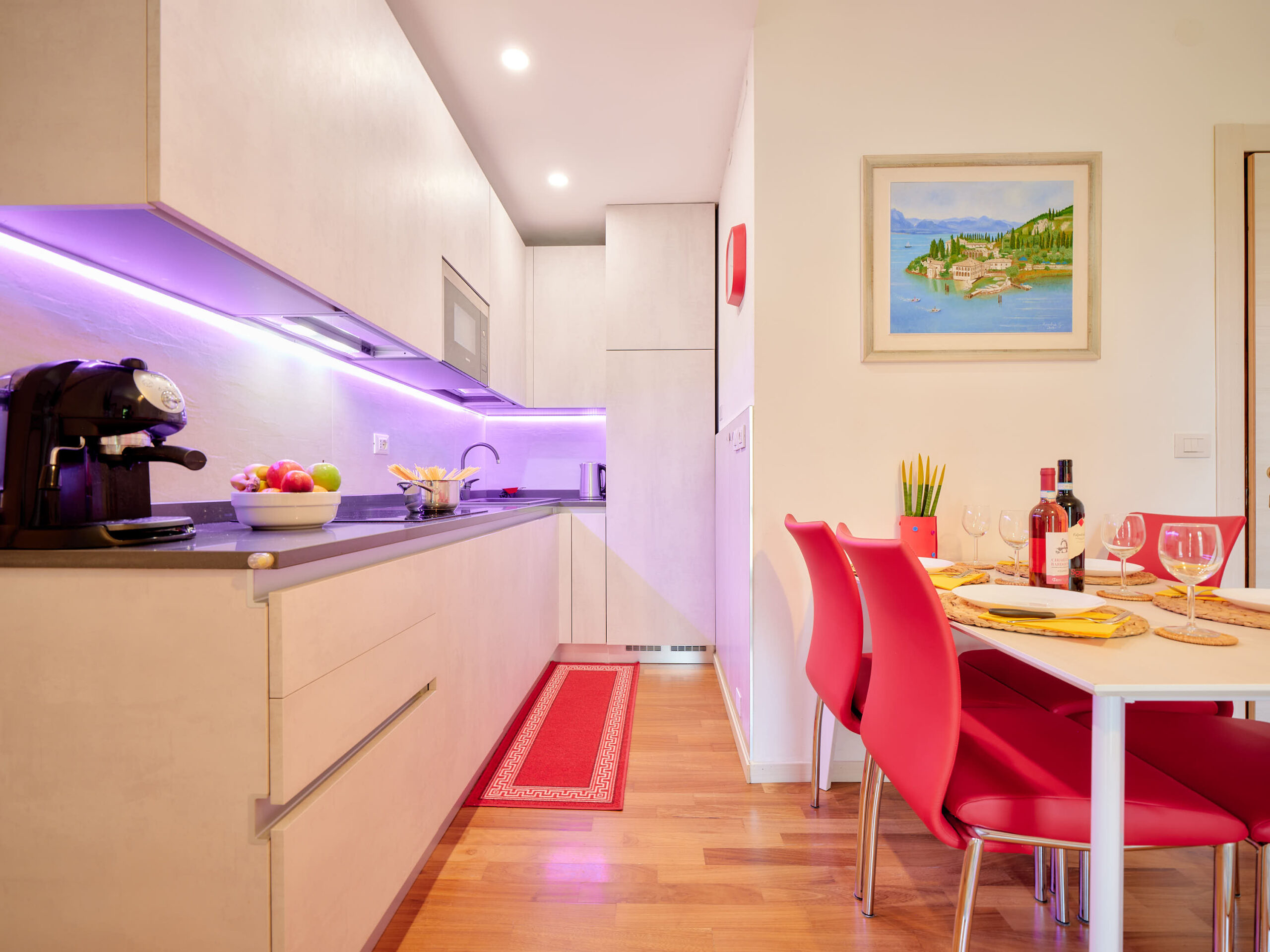 – Cucina: attrezzata con Piano ad Induzione, Frigorifero, Freezer, Lavastoviglie, Lavatrice, Forno a Microonde, Bollitore, Macchina per il Caffè a cialde, TV 32 Pollici