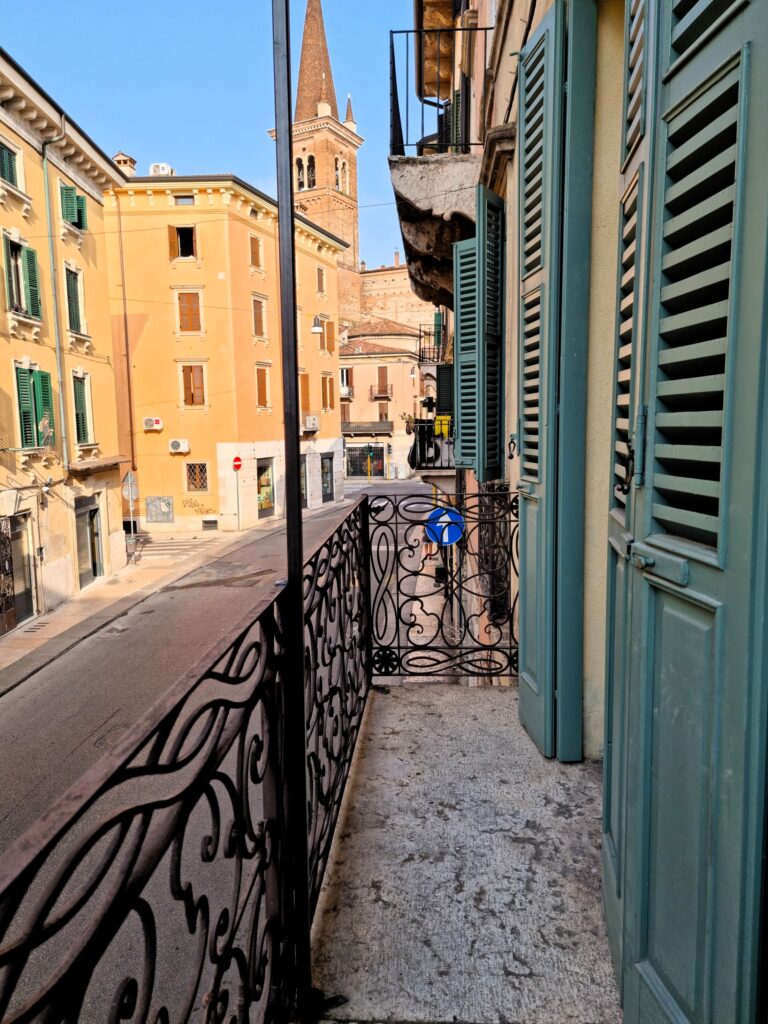 – un comodo balcone che affaccia sui palazzi storici della vivace Veronetta