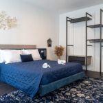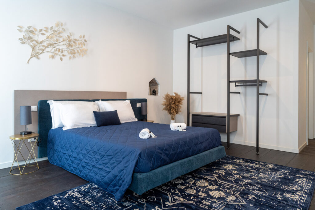 – una camera padronale da 27 m2 con letto matrimoniale queen size, smart TV Samsung da 43”, armadio in stile industriale e toeletta da trucco con grande specchio
