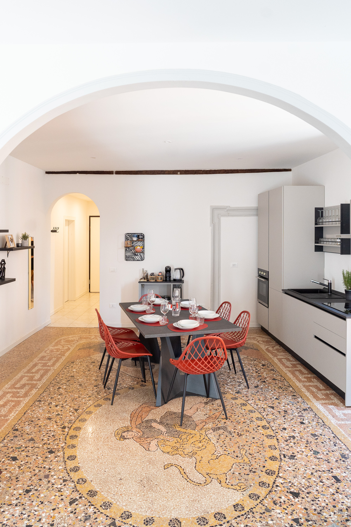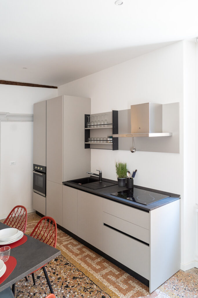 Si trova al primo piano di un’elegante palazzina, un tempo in uso come alloggio per i seminaristi veronesi, nel quartiere storico di Veronetta, vivace e colorato, ricco di botteghe artigiane e negozi vintage.