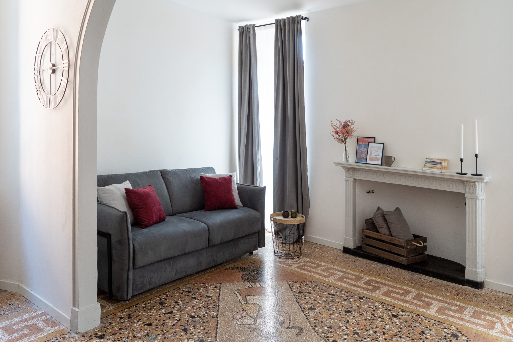 Suite Antico Seminario è frutto di un restauro completato a giugno 2023 che ha riportato alla luce gli originari pavimenti del 1800: a mosaico nella zona giorno ed in legno di rovere antico, prima patina, nella camera padronale.