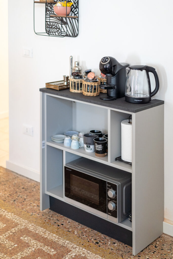 A vostra disposizione troverete una selezione di cialde Borbone e di te e tisane.
